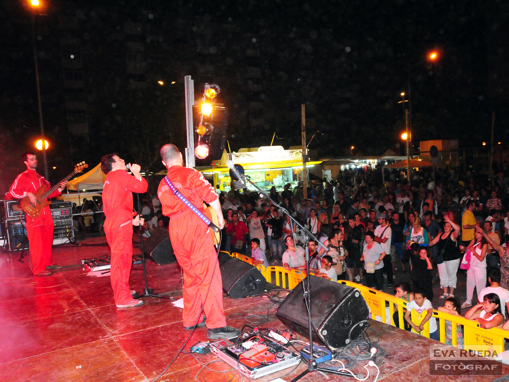Ben entrada la nit, els dos escenaris de la ciutat van oferir diferents actuacions que van conquerir el públic assistent. D'una banda, la plaça Major va congregar multitud de joves disposats a ballar fins ben entrada la matinada amb la discomòbil i d'altra, a l'altre emplaçament de la ciutat, el recinte Firal, i per segon any consecutiu, va actuar el grup badienc de flamenc Prefiero Soñar, que va tornar a fer somiar als nombrosos espectadors.