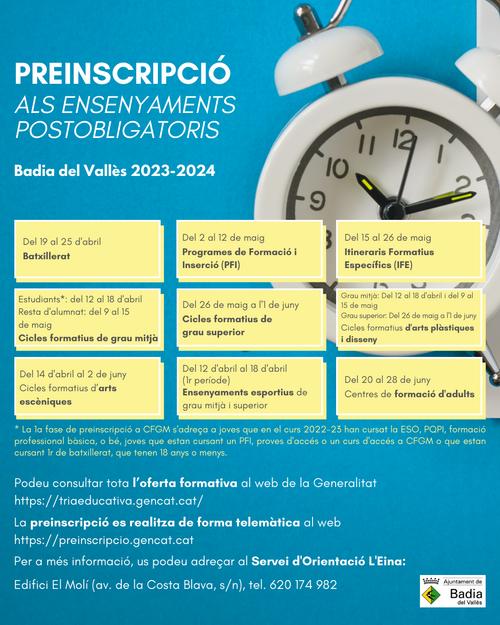 Addicionalment, s'organitzaran dos espais de suport en grup per a la preinscripció a Cicle Formatiu de Grau Mitjà per al procés de la resta d'alumnat i per a Cicle Formatiu de Grau Superior. Les dates previstes són: