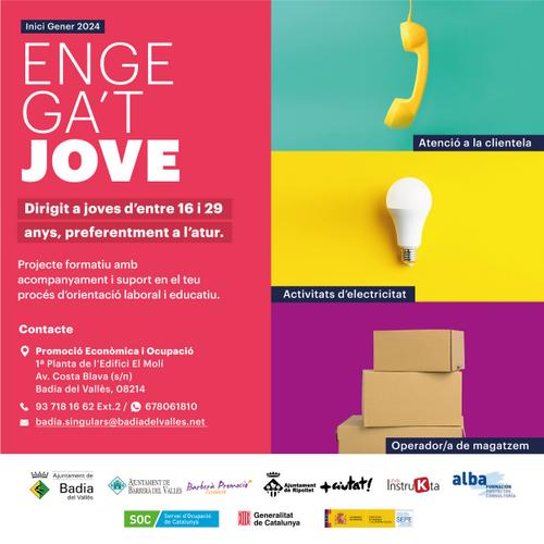 El programa Engega't Jove és un projecte enfocat a la inserció laboral i/o educativa per a joves, principalment en atur, d'entre 16 a 29 anys. És una actuació promoguda i impulsada pel Servei Públic d'Ocupació de Catalunya amb fons rebuts del Servei Públic d'Ocupació Estatal (SEPE)
