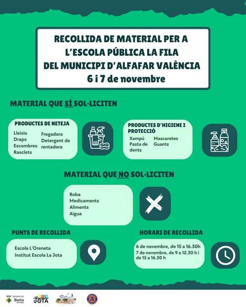 La iniciativa ha sorgit de l'equip directiu de l'Escola La Fila, que es va posar en contacte amb l'Ajuntament de Badia durant la tarda de dilluns. A la conversa mantinguda, des del centre educatiu es va comunicar la necessitat de rebre material concret per a la neteja, higiene i protecció.