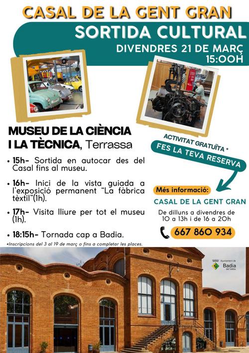 La sortida s'iniciarà divendres a les 15 hores, al Casal, des d'on sortirà l'autocar per anar al Museu. A partir de les 16 hores, es visitarà l'exposició permanent La fàbrica tèxtil, amb una durada prevista d'una hora. A continuació, es podrà visitar lliurement la resta del museu. A les 18.15 està prevista la tornada a Badia.