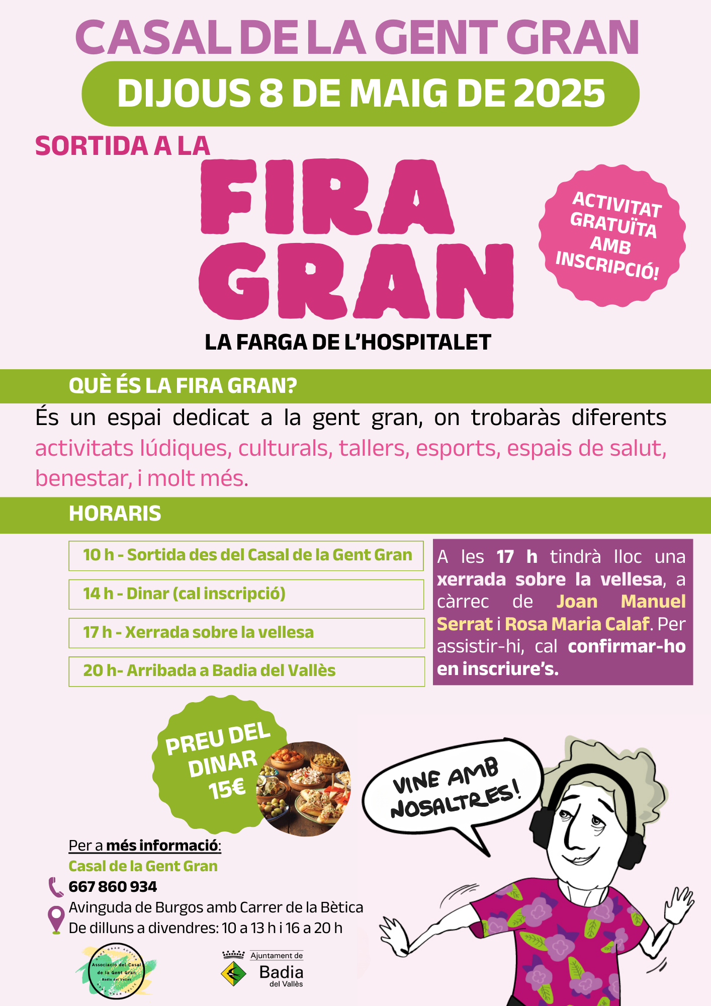 La Fira Gran és un espai dedicat a la gent gran, on trobaràs diferents activitats lúdiques, culturals, tallers, esports, espais de salut, benestar, i molt més.