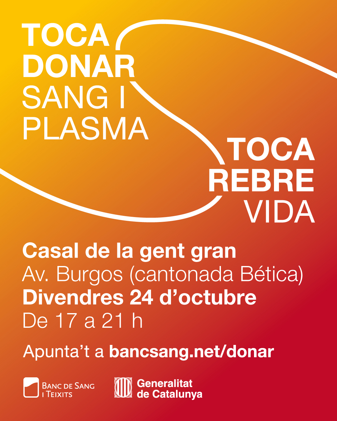 El Banc de Sang fa una crida a la ciutadania per mantenir el ritme de donacions, que continuen sent necessàries per a tractaments de càncer, accidents, operacions, parts amb complicacions, etc.