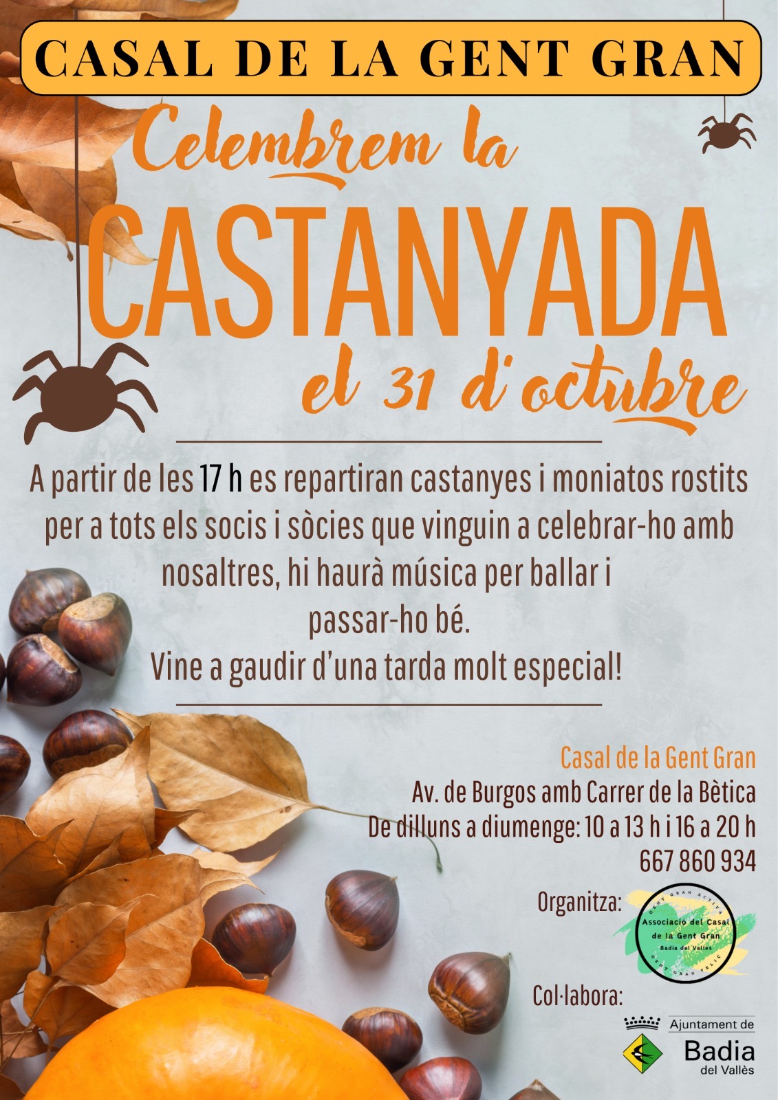 El Casal de la Gent Gran repartirà castanyes i moniatos rostits divendres, 31 d'octubre, per a totes les persones sòcies que vinguin a celebrar-ho. Hi haurà música per ballar i passar-ho bé!
