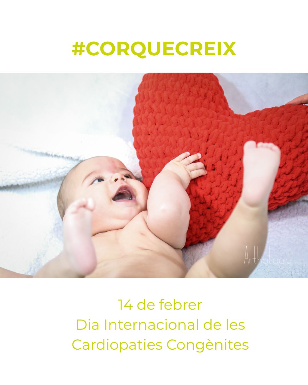 El 14 de febrer, Dia Internacional de les Cardiopaties Congènites, és un bon dia per donar visibilitat a la realitat d'aquestes persones i des de l'Associació de Cardiopaties Congènites (AACIC) i la Fundació CorAvant s'ha creat la campanya #corquecreix. El cor fet amb els dits d'una sola mà (també conegut com a cor coreà) representa agraïment i estima i ha estat la imatge escollida per a la campanya.