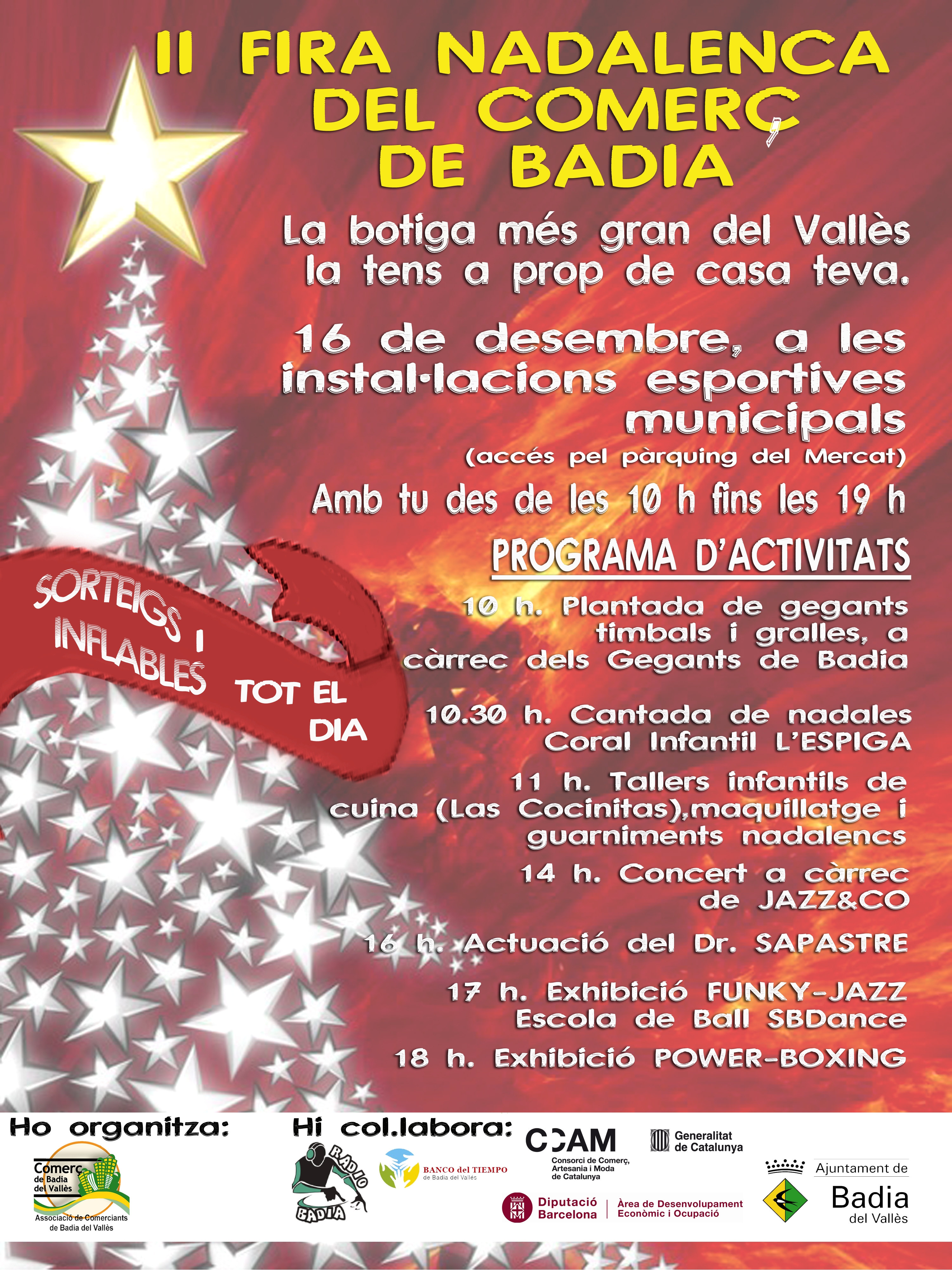 El proper diumenge, dia 16 de desembre, l'Associació de Comerciants de Badia del Vallès organitzarà la II Fira Nadalenca del Comerç que tindrà lloc al pavelló de les instal·lacions esportives del municipi, en horari de 10 a 19 hores ininterrompudament.