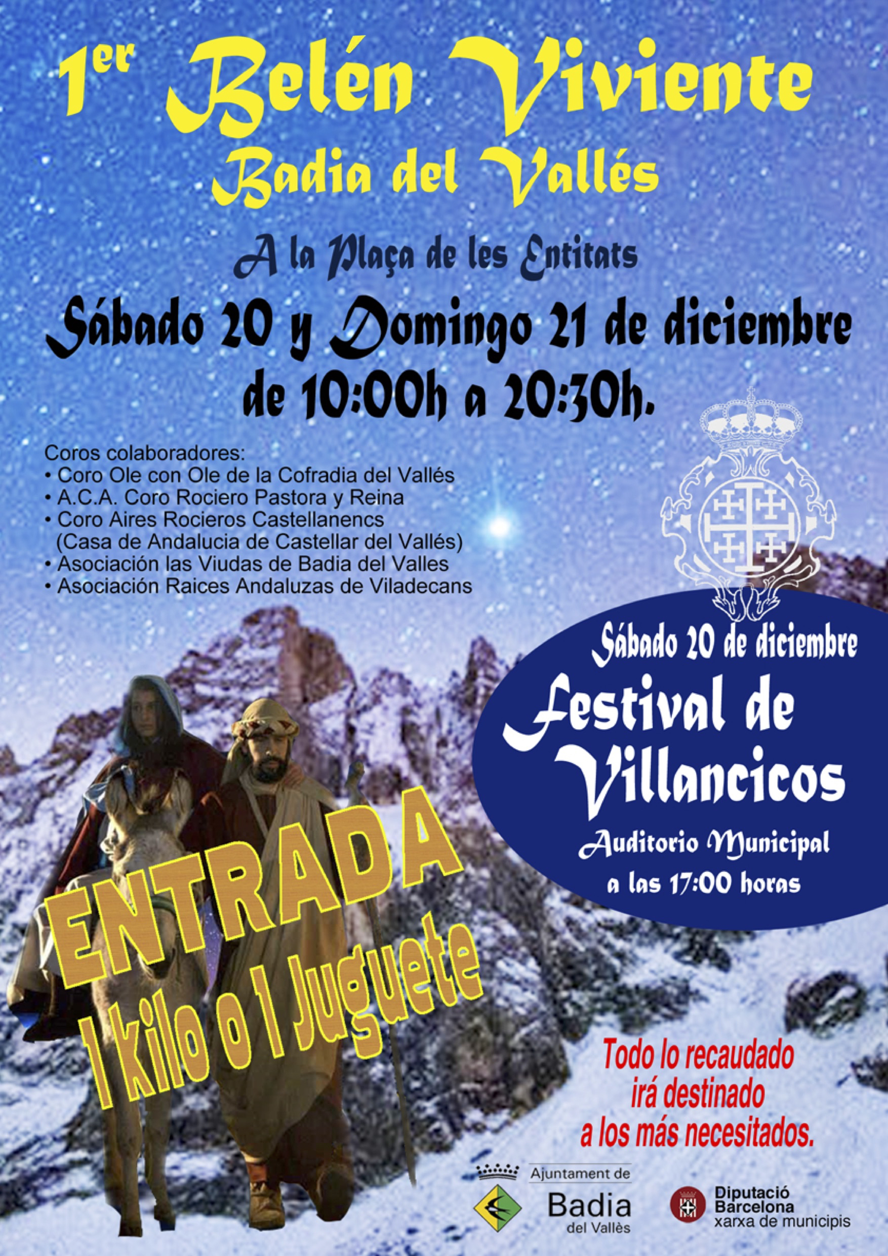 El pessebre es podrà visitar als matins, de 10 a 13 h i a les tardes, de 16.30 a 20.30 h, els dies 20 i 21 de desembre, a la plaça de les Entitats. L'accés al pessebre té un preu simbòlic: un quilo de menjar o una joguina.