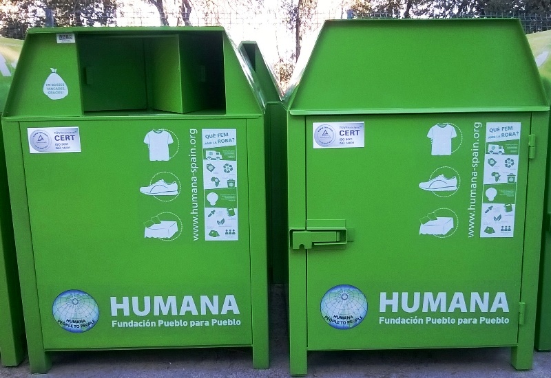 Pel que fa a la destinació de les peces dipositades als contenidors, un 13 % es destina a botigues de segona mà d'Humana; el 50 % s'envia al continent africà; un 30 %, no reutilitzable, es ven a empreses de reciclatge i el 7 % restant és material inservible que es destina a la generació de combustible derivat de residu (CDR) per a la seva valorització energètica.