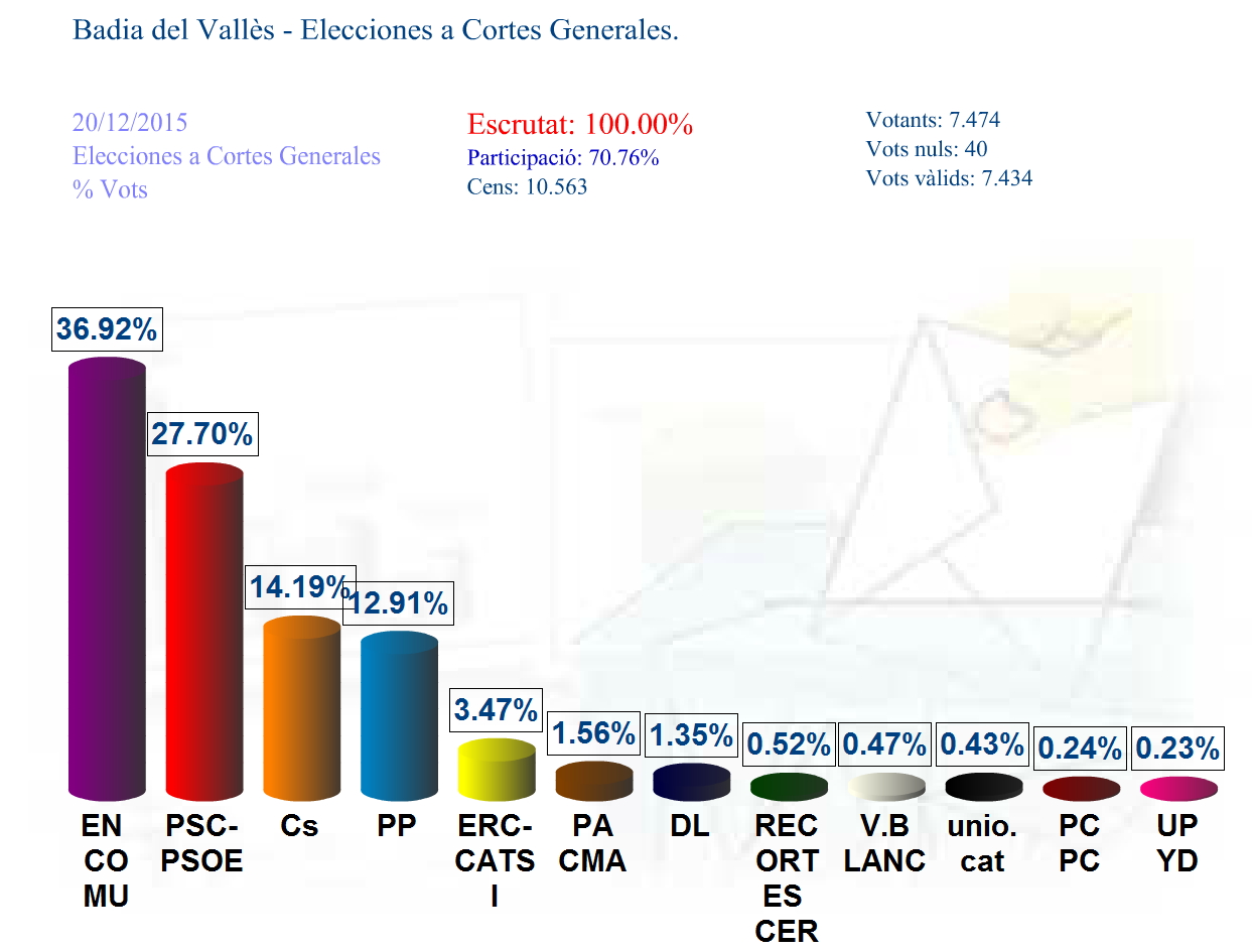 ![]() | Participació a les Eleccions Generals 2015 a Badia del Vallès Fitxer: Llistat_participacio_2000.PDF Format: Acrobat-PDF |