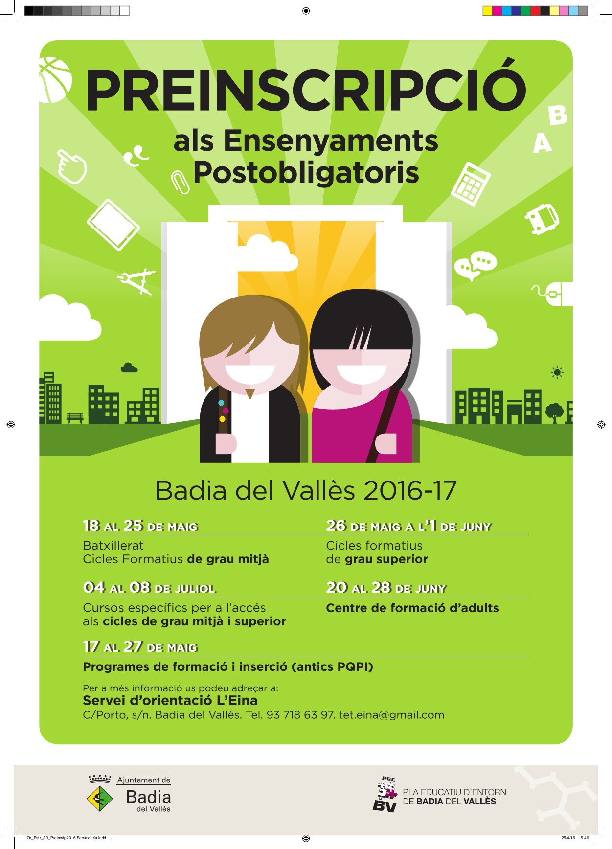 Si necessiteu ajuda i orientació, podeu dirigir-vos al servei L'Eina que l'Ajuntament de Badia del Vallès posa al vostre abast (carrer de Porto, s/n. Badia del Vallès, telèfon: 937186397).