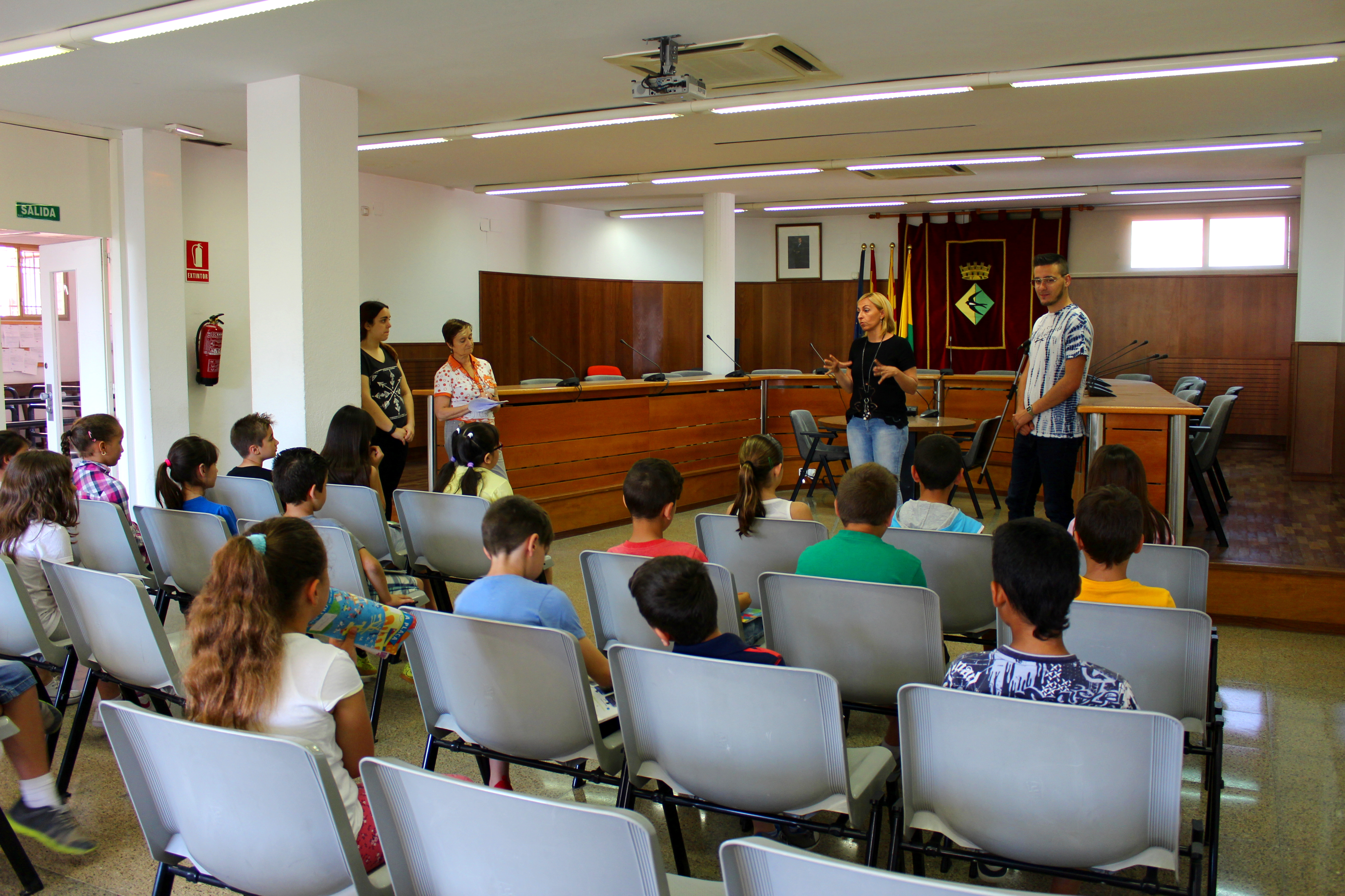 del consistori, explicacions que els infants han seguit atentament. Els alumnes, al seu torn, han pogut fer preguntes sobre temes que són del seu interès, com ara el parc de Joan Oliver o el pressupost municipal. Els infants han tingut l'oportunitat, també, de visitar les dependències de la Policia Local.