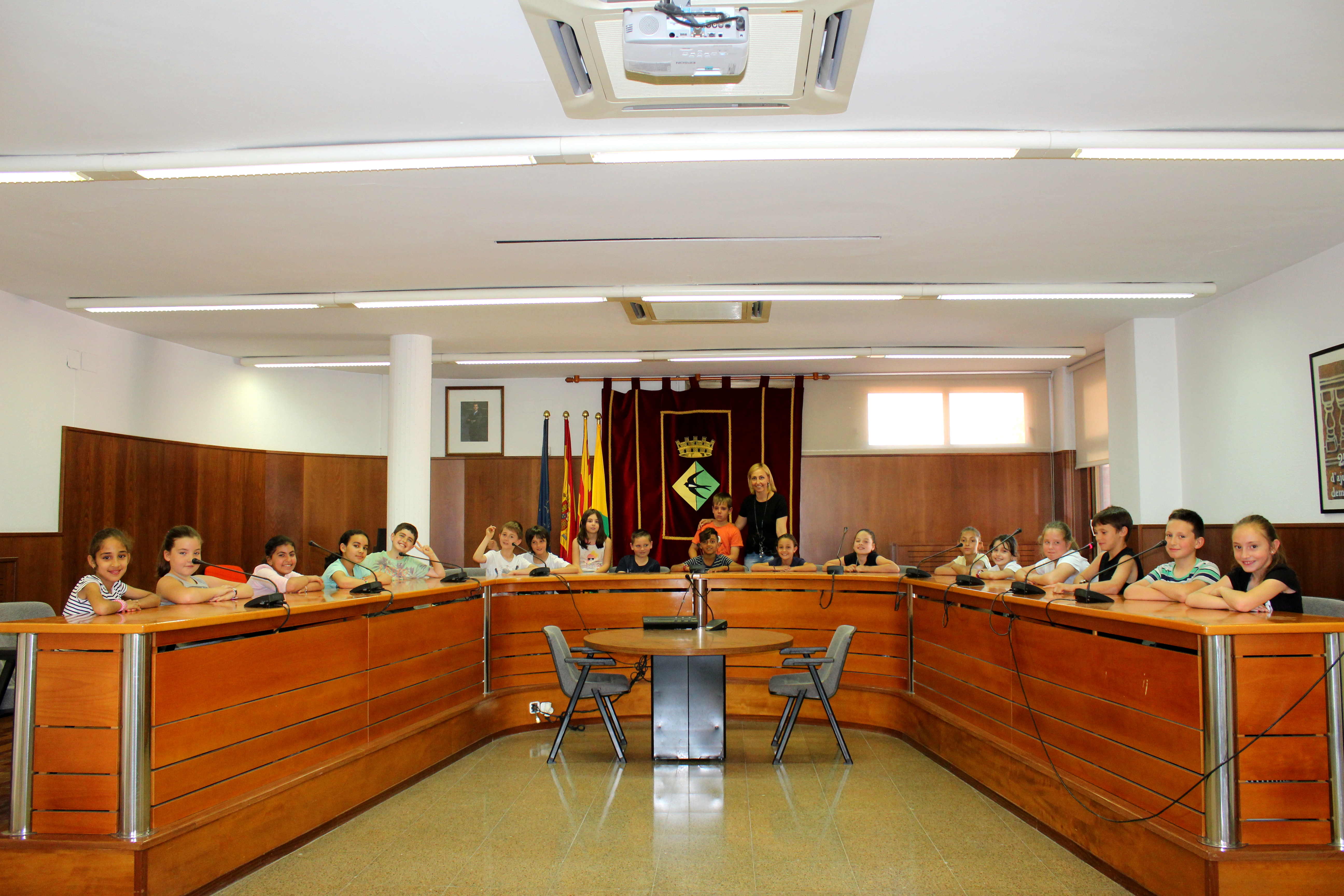 Aquest matí, una quarantena d'alumnes de 3r de primària de l'escola La Sardana ha fet una visita a l'edifici de l'Ajuntament, on han estat rebuts per l'alcaldessa de la ciutat, Eva Menor, i el regidor d'Educació, Ivan Sanz. A la Sala de Plens, l'alcaldessa els ha explicat el funcionament