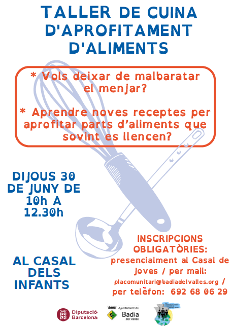 Cal inscriure's prèviament bé per mail (placomunitari@badiadelvalles.org), bé per telèfon (692 68 06 29) o bé presencialment, al Casal de Joves.