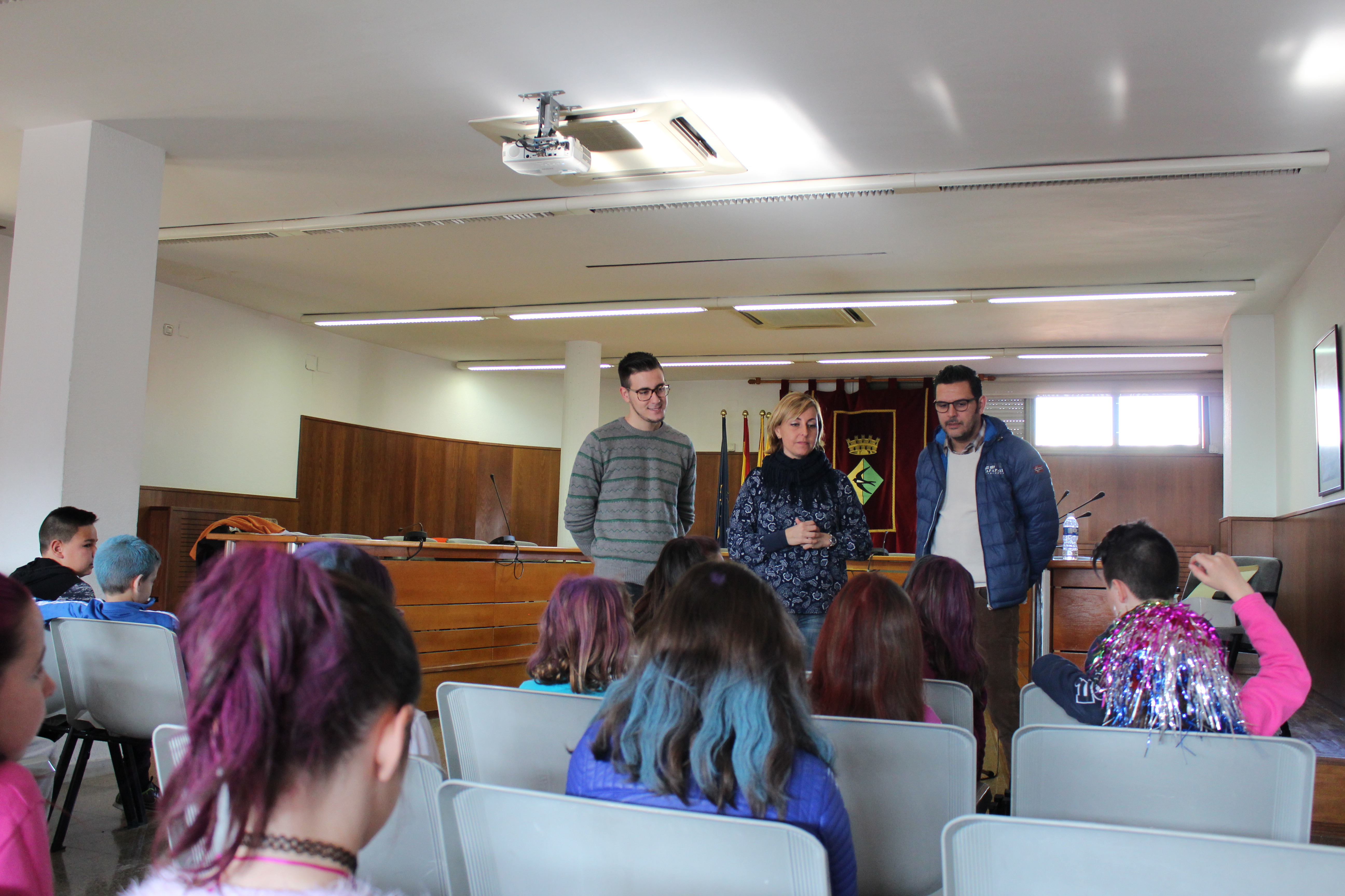L'alumnat de 4t curs de l'escola La Jota ha visitat aquest matí l'Ajuntament i ha pogut parlar amb l'alcaldessa, Eva Menor i el tinent d'alcaldessa de l’Àrea d'Acompanyament a les persones i regidor d'Infància i Educació, Iván Sanz. Al final de la visita, se'ls ha afegit el tinent d'alcaldessa de l’Àrea de Territori, Rafa Moya. Els i les estudiants s'havien informat anteriorment sobre alguns aspectes del funcionament de l'Ajuntament i han pogut preguntar als representants polítics els dubtes i qüestions que els havien sorgit. Els infants han mostrat molt d'interès i han escoltat atentament les explicacions que els han donat; a més, han pres nota acuradament de les respostes de l'alcaldessa i els regidors.