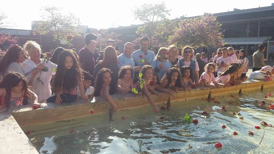El moment culminant, i el més emotiu de tots, va ser, com sempre, l'ofrena floral a la font de la plaça en memòria del mig milió de víctimes gitanes de l'Holocaust nazi.