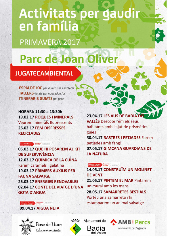 Les Jugatecambientals de l’Àrea Metropolitana de Barcelona representen espais on les famílies amb infants poden compartir una estona de joc i experimentació mentre coneixen els valors dels espais metropolitans on es desenvolupen, en aquest cas el parc de Joan Oliver, a més de continguts relacionats amb la sostenibilitat. La Jugatecambiental de Badia del Vallès, que està gestionada per Bosc de Llum, tornarà a la tardor amb més activitats realacionades amb la natura i el medi ambient, tallers, espais de joc i experimentació no dirigits i un punt d'informació amb propostes per gaudir del parc i el municipi.