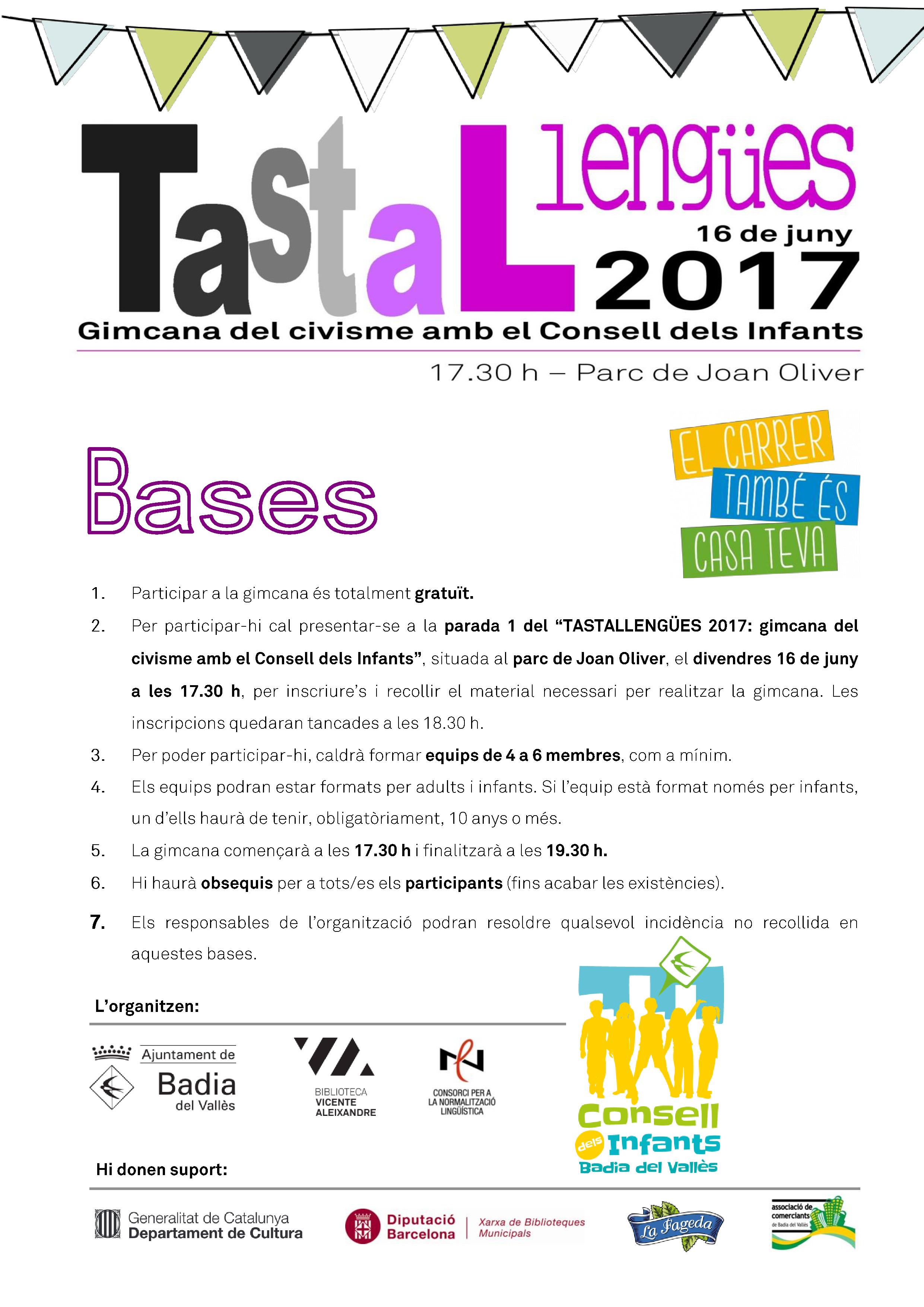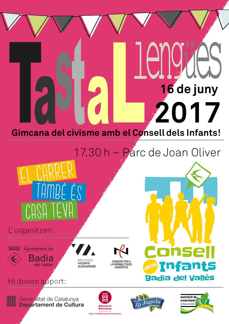 El proper divendres, 16 de juny, a les 17.30 h, al parc de Joan Oliver, tindrà lloc la popular gimcana familiar Tastallengües de Festa Major.