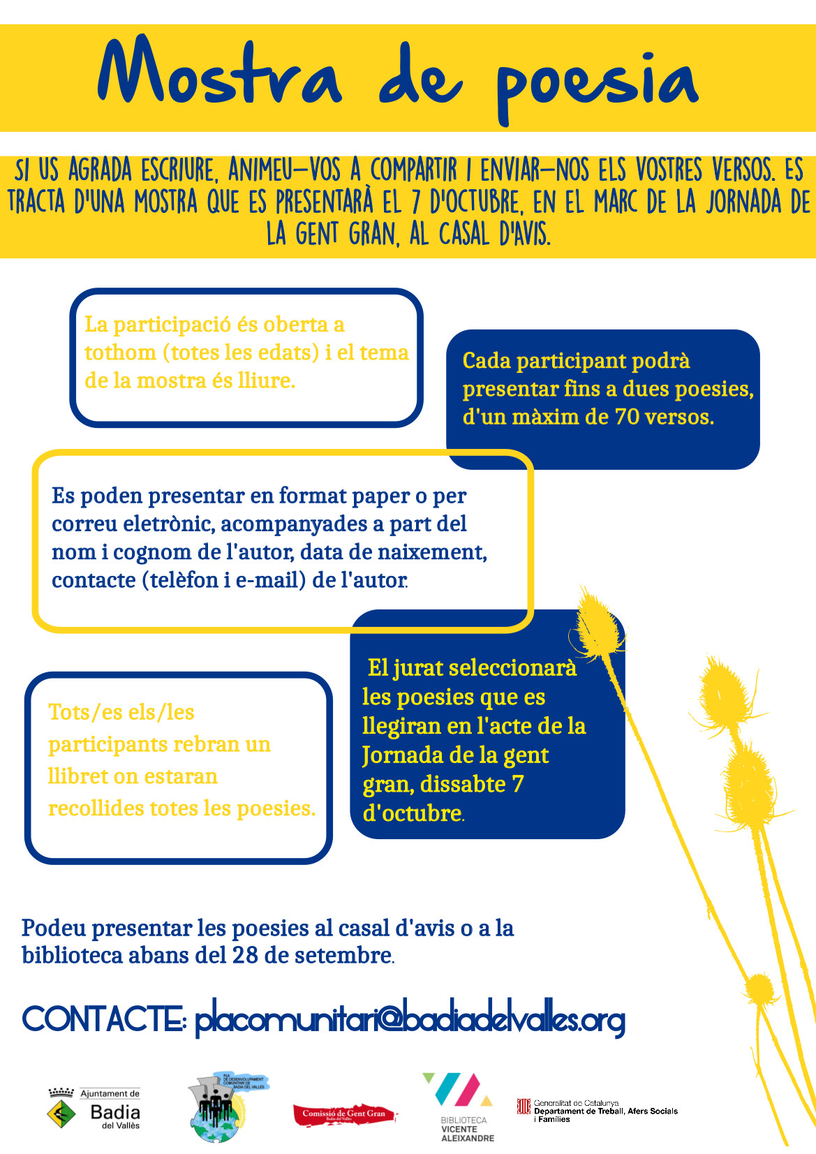 Un any més, Badia del Vallès organitza la Mostra de Poesia, emmarcada en la celebració de la Jornada de la Gent Gran.