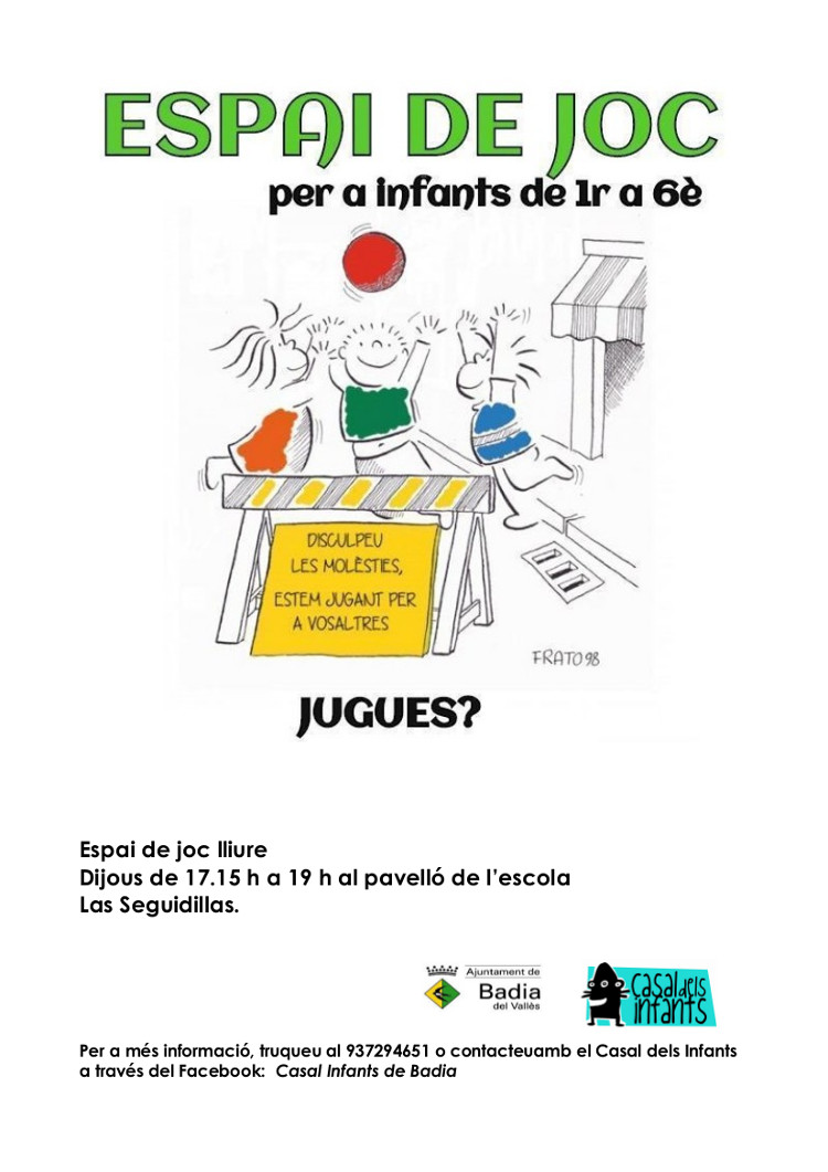 A més, tots els dijous, també de 17.15 h a 19 h, el pavelló de l'escola Las Seguidillas acull l'Espai de Joc, una activitat basada en el joc lliure on, mitjançant els racons de joc, l'infant pot experimentar, desenvolupar la seva creativitat i imaginació, aventurar-se en el seu propi joc i també fer noves amistats a la vegada que gaudeix d'un ambient agradable amb d'altres infants. L'Espai de Joc està obert a tots els infants del municipi que estiguin cursant entre 1r i 6è de primària. La inscripció es fa al mateix Espai de Joc.