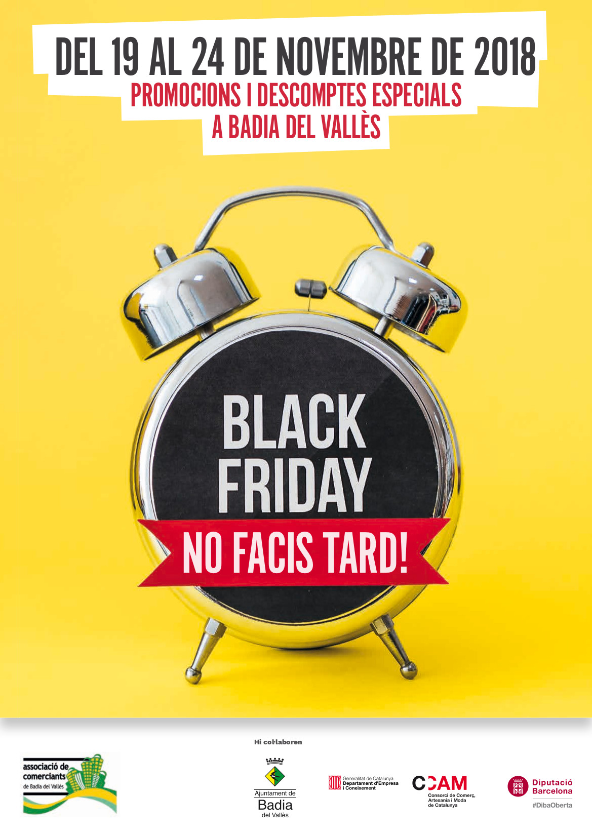 La setmana vinent, l´Associació de Comerciants de Badia del Vallès organitzarà el Black Friday. Així, del 19 al 24 de novembre, tots els comerços associats oferiran promocions i descomptes especials als clients.