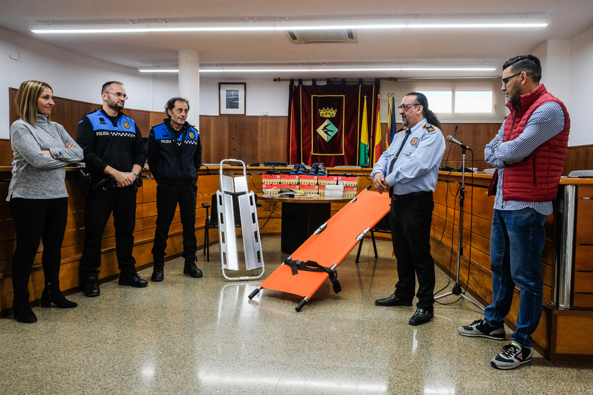 A la foto principal, membres de Protecció Civil de Badia amb el seu cap d'unitat, Francisco García (tercer per la dreta), posen amb el seu responsable municipal, el sergent Óscar Chamorro; l'alcaldessa, Eva Menor; el tinent d'alcaldessa de l'Àrea de Presidència, Rafael Moya, i l'inspector en cap de la Policia Local, José Carlos Izquierdo.