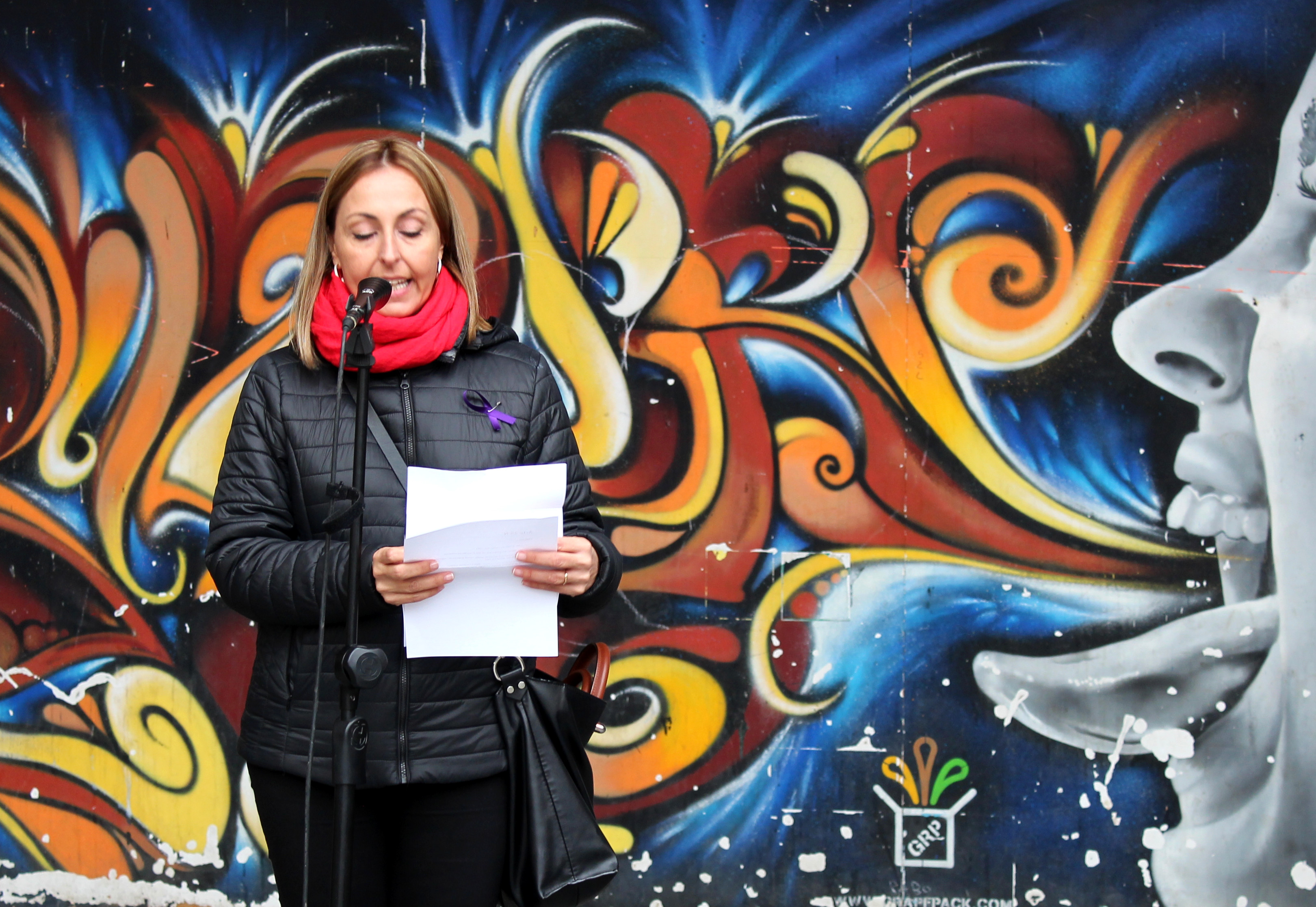 L'alcaldessa, Eva Menor, va obrir l'acte amb un discurs  Una integrant de Trenquem el Silenci va explicar la performance Zapatos Rojos  Les més joves, molt compromeses amb la lluita contra la violència de gènere