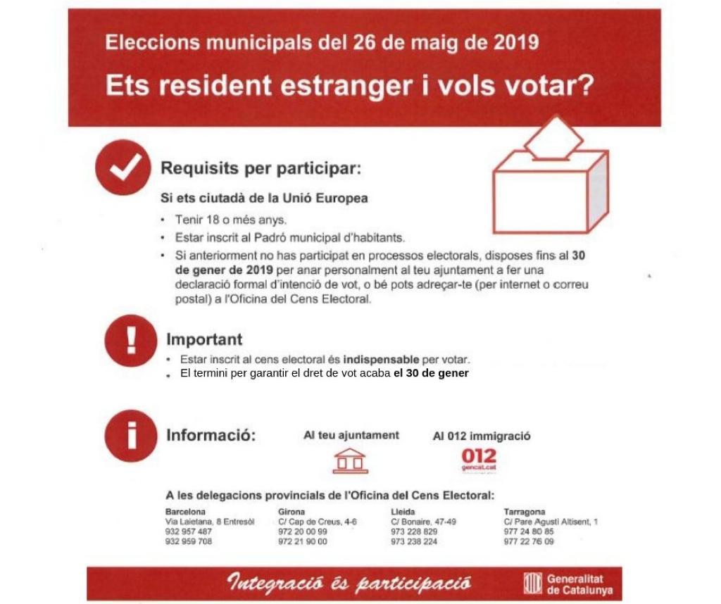 Si necessites més informació, pots adreçar-te a l'OAC de l'Ajuntament, al 012 Immigració o a les delegacions provincials de l'Oficina del Cens Electoral.