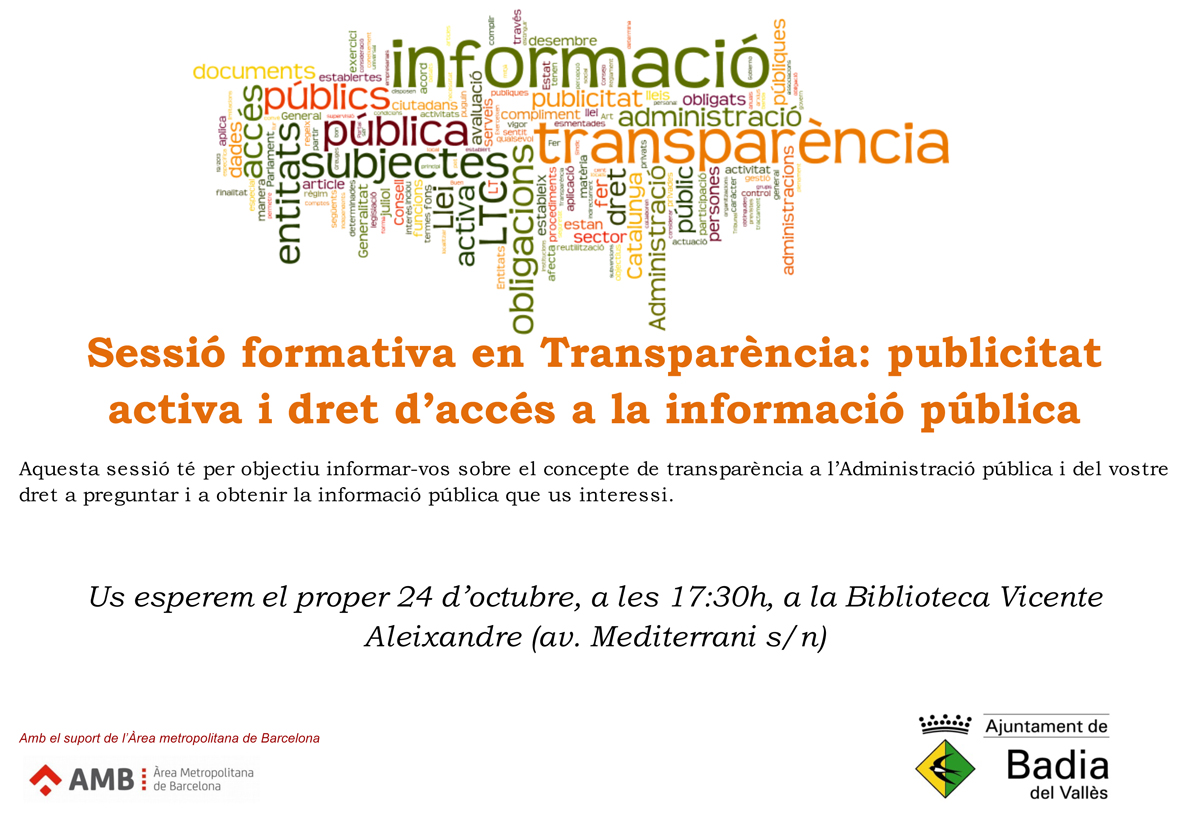 Demà dijous, informa't sobre la transparència a l'Administració pública a la sessió formativa que tindrà lloc, a les 17.30 hores, a la Biblioteca