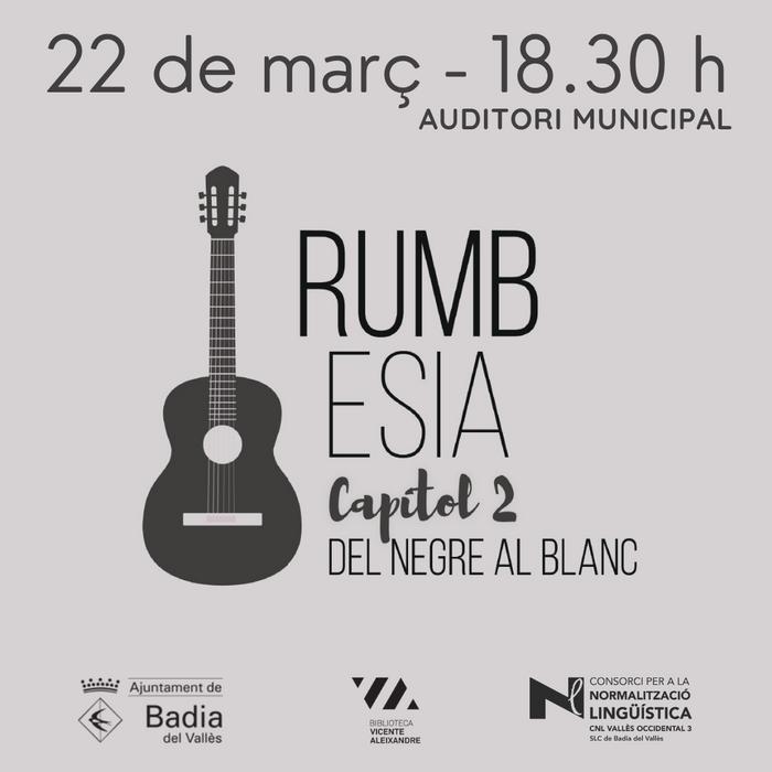 Per acabar aquesta diada dedicada a la poesia, a partir de les 18.30 h, a l'Auditori Municipal, hi haurà l'espectacle Rumbesia, Capítol 2, Del negre al blanc, de la companyia La última y nos vamos, un recital de poesia fusionat amb rumba en directe.